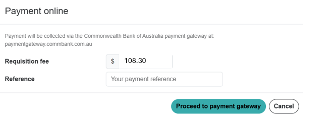 The requisition may include requisition fees and/or additional fees which were insufficient at lodgement. To pay these fees online by credit card: